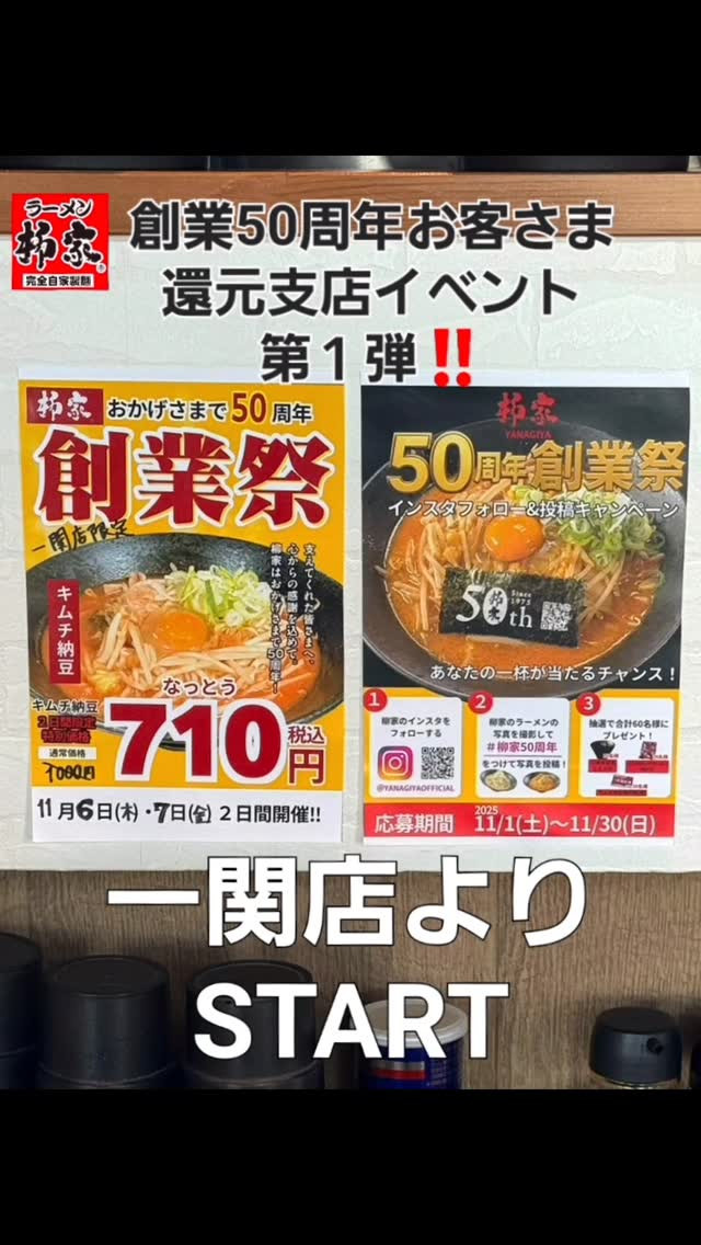 第一弾‼️一関店❗ キムチ納豆らーめん1000円→710円( 第一弾‼️一関店❗ キムチ納豆らーめん1000円→710円(ナットウ円) 是非御来店いただければ幸い。 スキル 投稿日 2025年11月4日 ← 柳家50周年記念!キャンペーン開始‼️ 11月末には……⁉️ 第一弾‼️一関店❗ キムチ納豆らーめん1000円→710円( →
